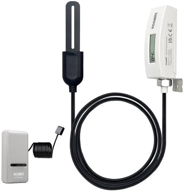 2024 Newest Soil Moisture Meter WH51L soil moisture sensor with 1m/ 3.28 ft PVC sensor wire could measure soil moisture. The LCD screen could display the real-time data. The data can be streamed by Wi-Fi Gateway (sold separately) and they can be viewed on the APP after the Wi-Fi configuration is done. A display console (sold separately) also can be used to display the received sensor value and submit it to the Internet.