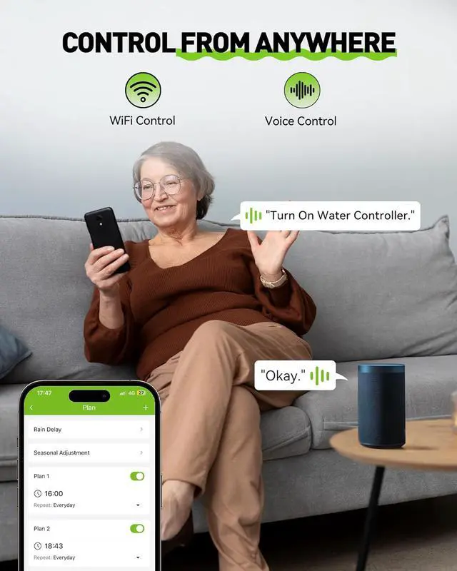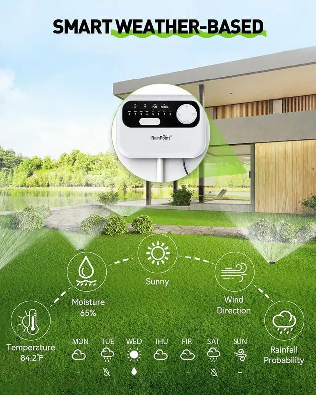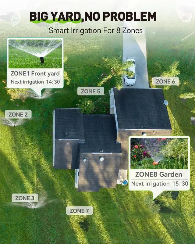 Meet Your Needs: Create up to 8 custom watering schedules for each zone, cycle, and interval frequency as a sprinkler timer to suit your lawn's specific needs. You also can customize each zone with a name for easy identification and management. A smart automatic sprinkler system is in your hands!