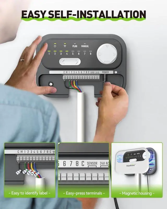 Easy Self-Installation: Our water timer sprinkler controller comes with complete installation parts and a DIY setup takes only 15-30 minutes, requiring no special tools. Easy identification label stickers help you quickly replace your old controller and Easy-press terminals help you quickly wire