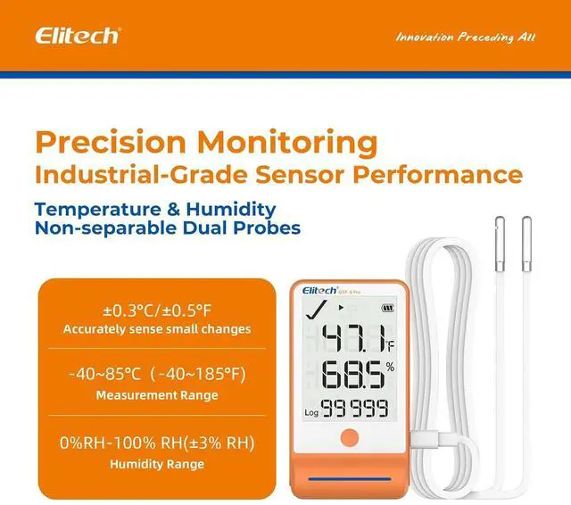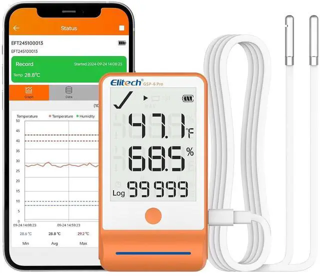 Dual Power Options - GSP-6Pro is powered by AA battery, allowing continuous data recording for up to one year at a 15-minute interval with the alarm turned off at normal temperatures. And USB power option is available for use when the battery is flat.