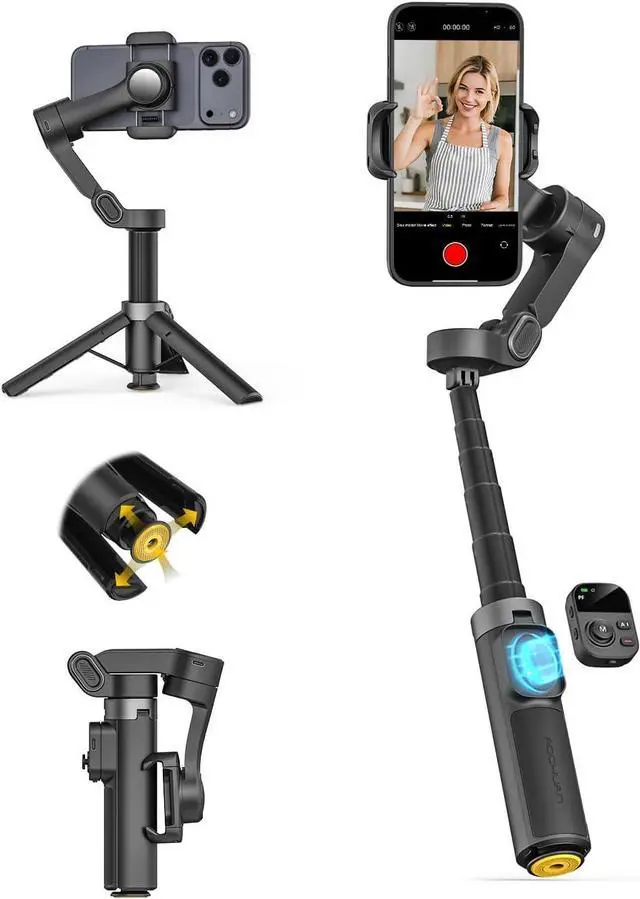 More Compact Folding Size for Travel: Now smaller and lighter when folded, Smart X3 gimbal for iPhone easily fits into any bag or pocket. Designed for creators who shoot on the go.