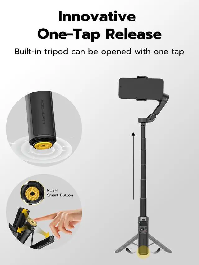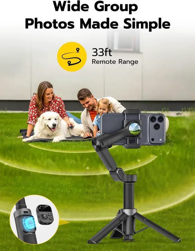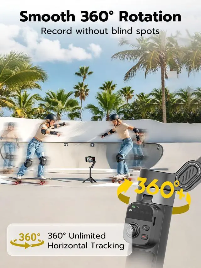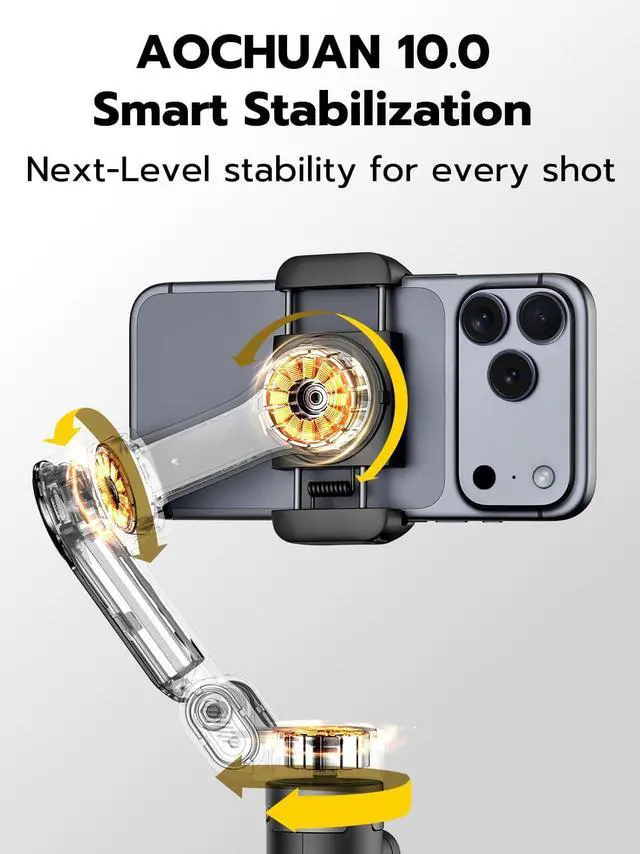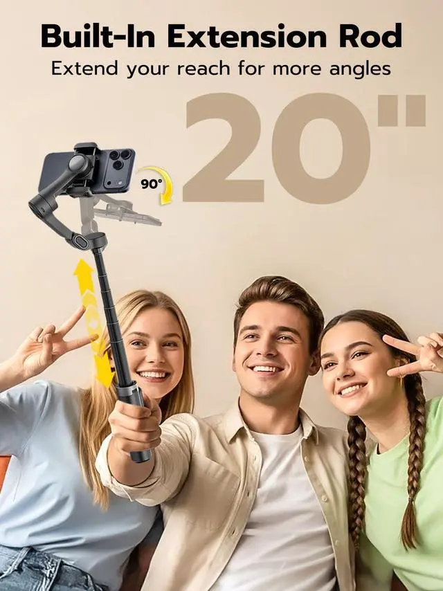 Built-in 20" Extension Rod for Flexible Angles: Smart X3 phone gimbal's built-in telescopic rod lets you capture higher, wider, and more creative angles, suitable for group selfies, travel scenes, and overhead shots.