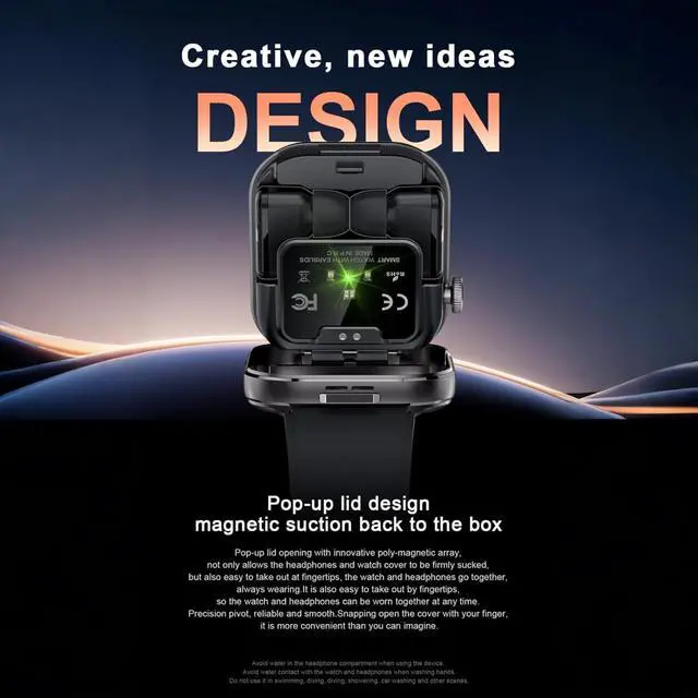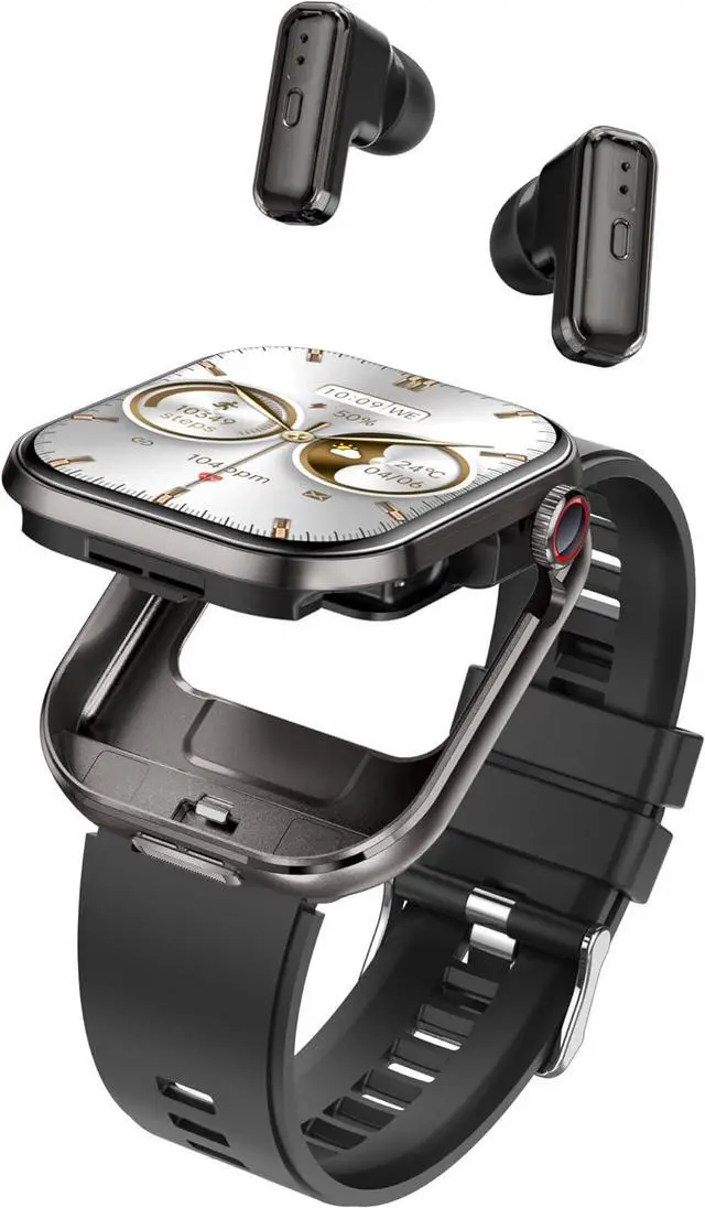 Clever hidden DesignOur smartwatch with built-in Bluetooth earbuds compartment delivers a revolutionary user experience. Thanks to its clever design, the earbuds are hidden beneath the screen, ensuring they wont fall out even during intense physical activity. The integrated earbud compartment provides excellent protection against dust and accidental drops, making it extremely convenient to use.