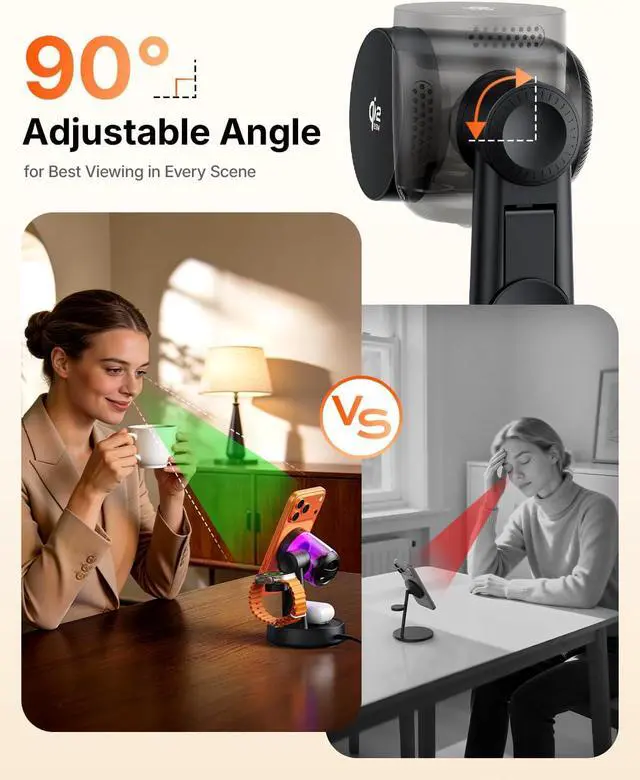 true versatility: vertical for video calls, horizontal for movies, or flat for stable overnight chargingthree modes, zero compromises