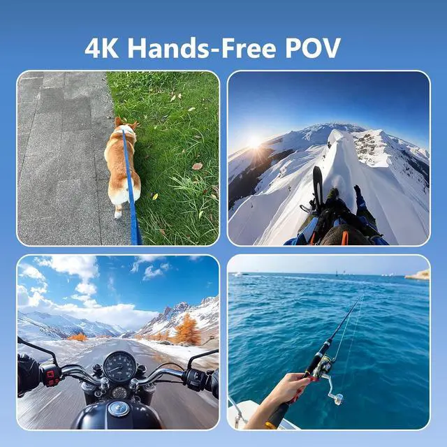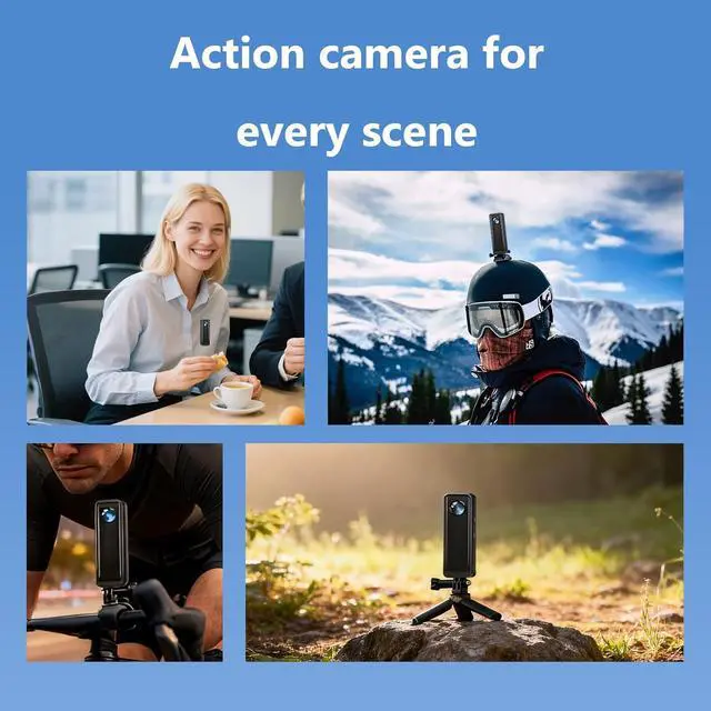 [Wide Application]The action camera is equipped with standard British 1/4 Nut, it can be mounted on helmets, bicycles as a body camera, motorcycles and cars as a motorcycle car recorder. It can also be used with all kinds of sports camera accessories, selfie sticks and tripods for shooting