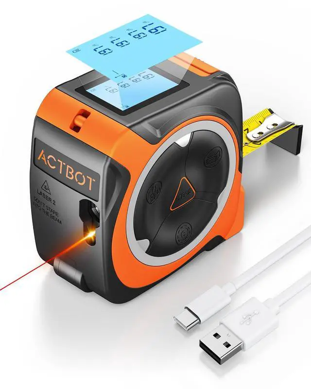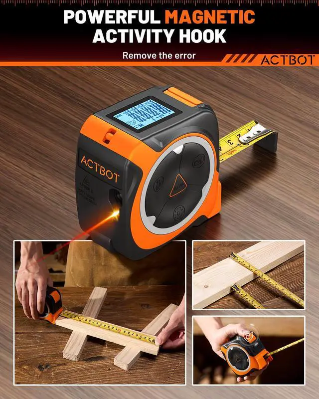 Powerful Magnetic Activity Hook: The movable magnetic tape hook of this digital measuring tape with laser can automatically compensate for surface thickness, ensuring accurate readings when pulling or pushing. Heavy-duty magnet grips pipes, conduits, and metal surfaces during furniture fitting or industrial alignment