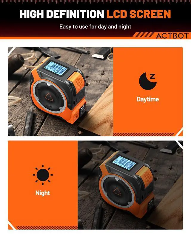 High-Precision Performance: This laser measuring tape offers high precision (±1/16 inch) to help carpenters, renovators and engineers work efficiently and accurately. With strong laser penetration, it ensures precise outdoor measurements during daytime for outdoor courtyards, factories, warehouses, improving the accuracy of tasks like courtyard planning. Critical for carpenters, renovators, and industrial surveyors