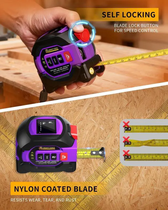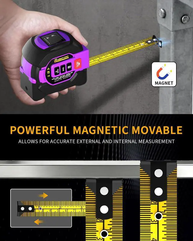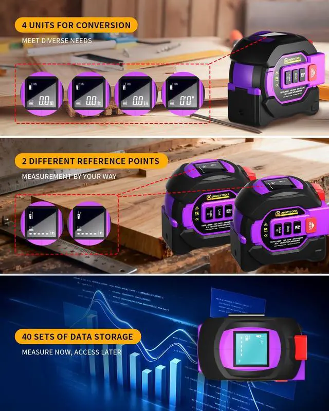 User-Friendly: Swap AAA batteries anytimeno dead-tool panic like with built-in lithium! The self-locking tape auto-secures measurements, while one-touch release saves your thumb. A jumbo LCD shows clear readings (even in sunlight! ), and the magnetic tip grabs metal pipes or studs. Store 40 measurements for grab-and-go accessspeed up your workflow!
