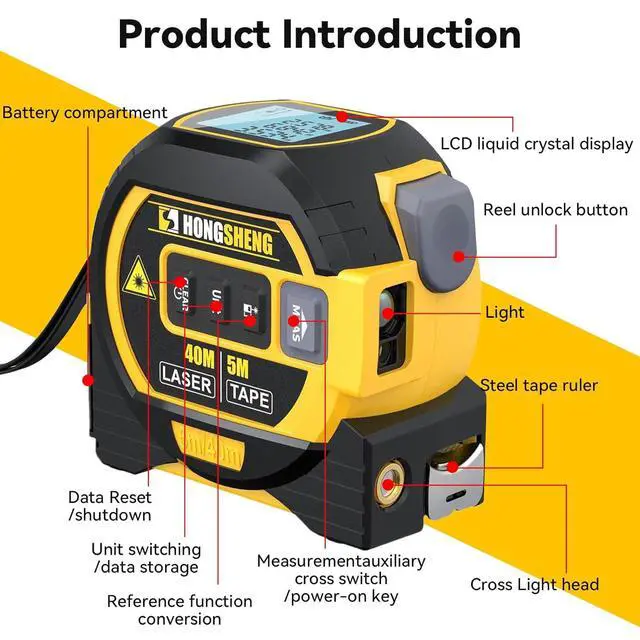 Versatile 3-in-1 Tape MeasureThe tools size is 3.15 * 3.35 * 1.77 in. The digital measuring tape combine a 135Ft measure and a 16Ft tape measure, cross marking. 3 in 1 digital tape measure ideal for measuring larger areas