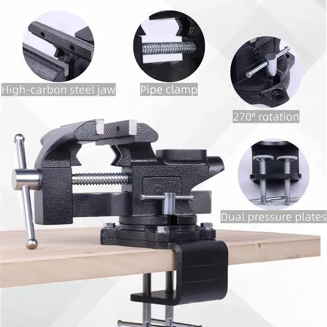 Upgraded BaseEquipped with a clampable base, the vice can be fixed without drilling holes on the workbench. The dual-screw design enhances clamping stability, making it suitable for most working scenarios.