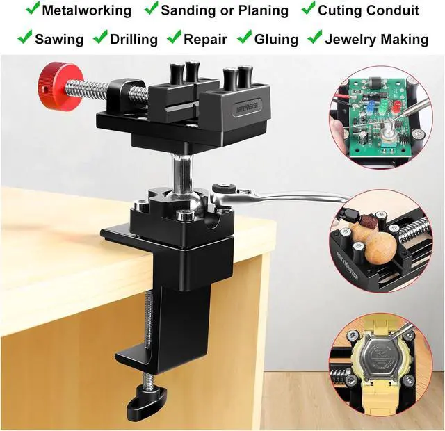 Multipurpose Mini Vise: Portable for Desktop, Precise Clamping, Easy OperationThis mini vise can be easily mounted on the edges of various tabletops (with a maximum clamping thickness of 2.8 inches)
