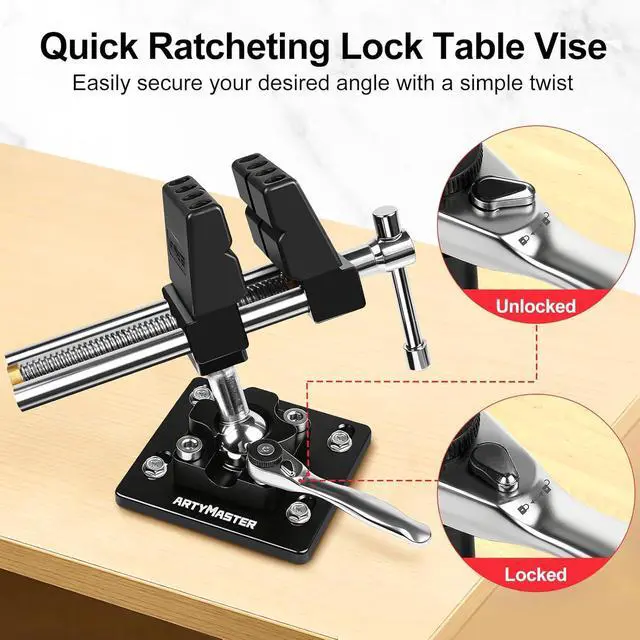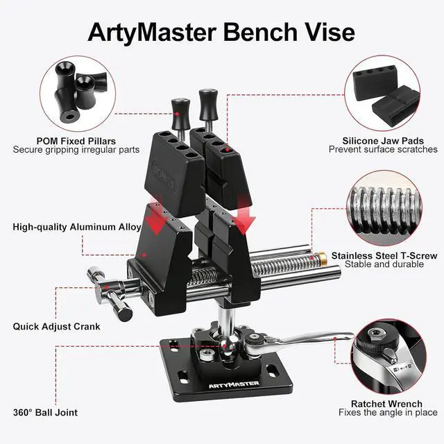 360° Rotating Workbench ClampUpgrade Your Workspace with the ViseThe 4-inch bench vise features an innovative 360° ball-head rotation and quick ratchet lock. Whether youre a woodworker refining joints, a hobbyist repairing tools, or tackling household projects, this vise adapts effortlessly to your every need.