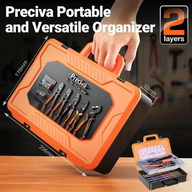 Portable & Organized Storage Case This crimping tool set comes with a dedicated storage box, which not only enhances the product's quality but also ensures that all your connectors and tools are neatly stored. Each component has its designated place, preventing loss and damage, thereby improving work efficiency and saving you valuable time.