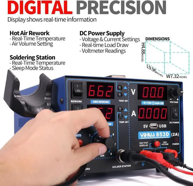 Precision Both the soldering station and the hot air rework station comes with high precision PID temperature stabilization function to maintain them at the set temperature. This way, you can enjoy a more efficient and smoother soldering/rework experience.