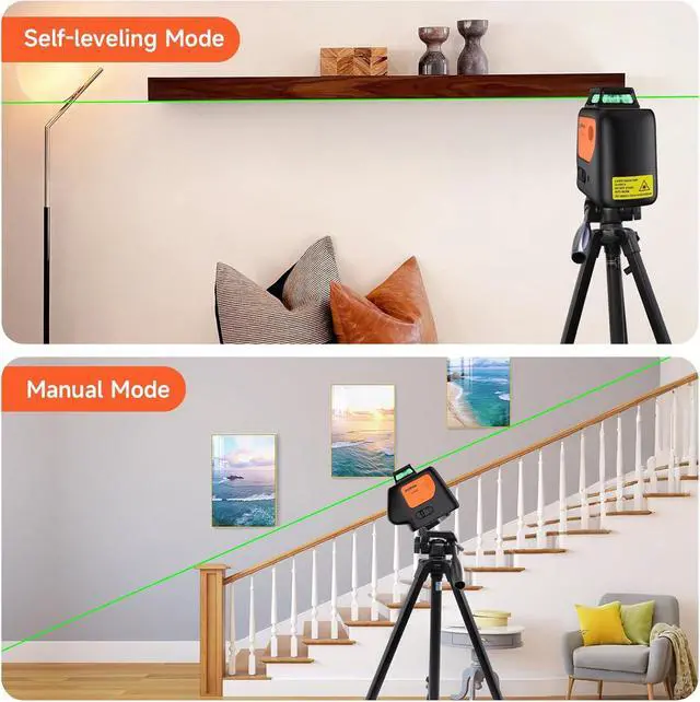 Self-leveling & Tilt ModeOn self-leveling mode, the laser level will auto level within ±4°. When working on Tilt Mode, the laser line can be locked at any angle. It also supports pulse mode for seamless use with a laser receiver, extending your working range up to 197ft.