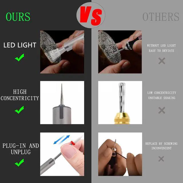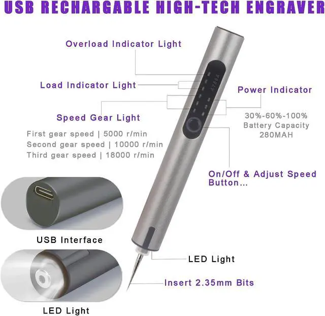 Use: The engraving machine is lightweight and its ergonomic design ensures comfort during long-term use. Ideal for DIY enthusiasts, hobbyists, artists and professional jewelers