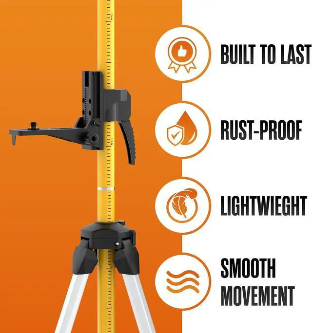 BUBBLE LEVELER - The built-in bubble level of the lazer stand ensures accurate alignment and leveling every time. The easy-to-read bubble helps you quickly identify when everything is perfectly level, making laser setup quick and effortless.