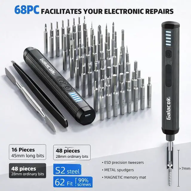 USB-C Rechargeable with LED Work Light Recharge easily via USB-C. Integrated LED light improves visibility in tight or dark spaces, making detailed repair work easier and more efficient.