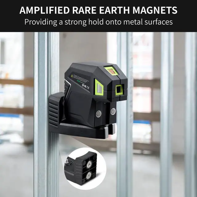 EASY TO USE: With 1/4"-20 and 5/8"-11 female threads, the laser tool can be mounted on tripods or support poles. The included magnetic base also features powerful rare earth magnets, providing a strong hold onto metal surfaces
