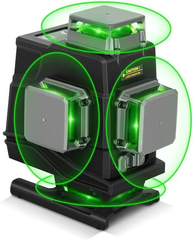 This self-leveling laser level features a green laser device made in Japan, offering high brightness and stability. Under the same lighting conditions, the brightness of the green beam is twice that of the red laser, with a working range of up to 130 feet (100 LUX) and an accuracy of ± 1/9 inch at 33 feet. When using the laser level receiver outdoors or in bright light conditions, the outdoor pulse mode helps extend the laser range to 200 feet