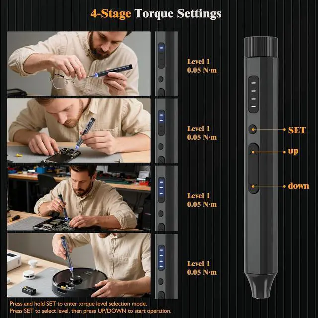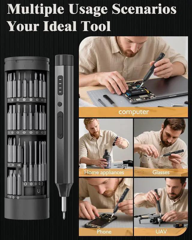 The Perfect Ready-to-Gift Toolkit: This mini screwdriver set is more than a tool; its a complete repair solution. The box contains our electric screw driver, 62 bits in a sleek magnetic case, tweezers, a pry bar, a USB-C cable, and a manual. Its the thoughtful, all-in-one screwdriver set that requires no extra purchases and is sure to delight any DIY enthusiast, techie, or creator.