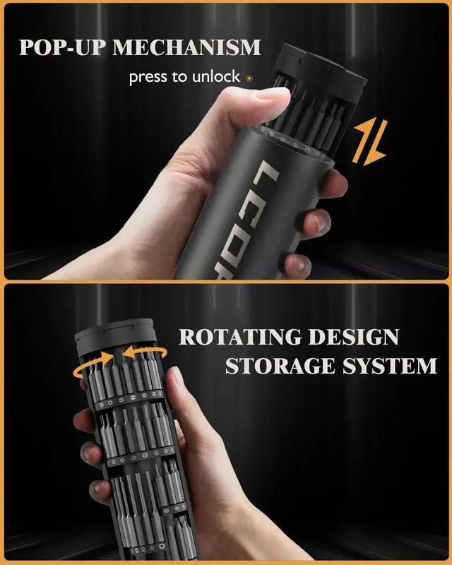 All-in-One Magnetic Screwdriver Set: Go beyond the standard with this comprehensive screw driver set kit. It provides 62 premium S2 steel bits across 18 categories for unmatched versatility. Every bit is built for a long service life. The entire magnetic screwdriver set is encased in a sophisticated aluminum storage system with a precise pop-up mechanism, delivering a high-end, organized experience.