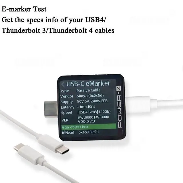 Dual USB-C Ports & E-Marker Detection- Designed with two USB-C ports for bidirectional measurement and an additional HID port for PC connection. Easily perform E-marker tests to verify the capabilities of USB4, Thunderbolt 3, and Thunderbolt 4 cables.