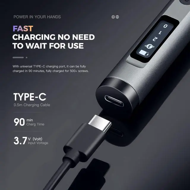 Long-Lasting Battery Life: Our electric screwdriver features built-in long-lasting batteries that can drive up to 1000 screws on a single charge. The Type-C port delivers fast full recharging, and with a super-powerful motor reaching 200 RPM, it handles even complex tasks with ease.