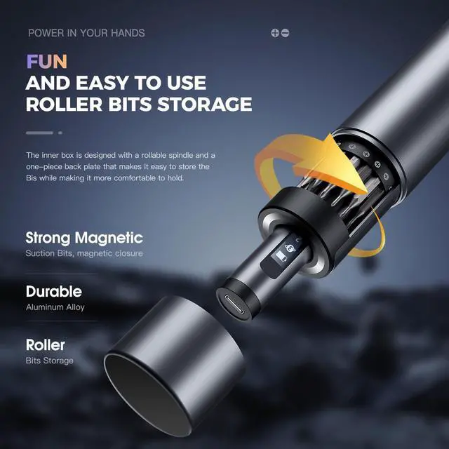 Items Included: You will get the items as follows: Electric Screwdriver Handle*1, S2 Bit*60, USB Charging Cable*1, Metal Storage Tube*1. Whether you're assembling furniture, tackling DIY projects, or repairing electronics, this handy electric screwdriver set is your preferred choice.