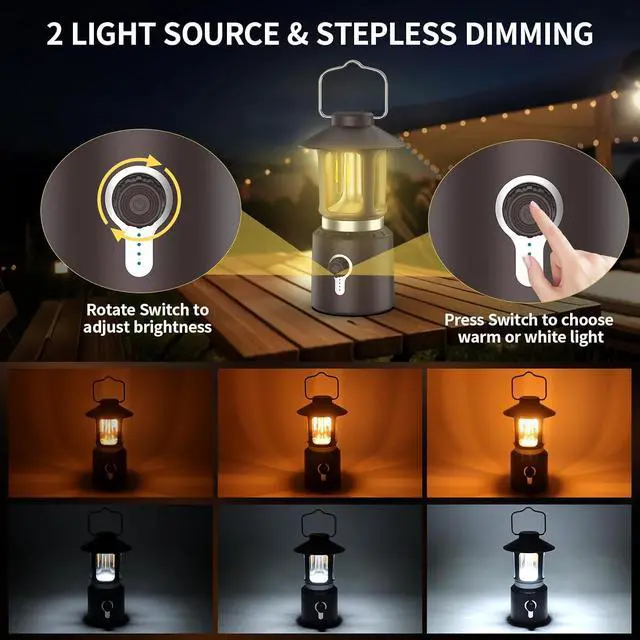 Long Battery Life & Emergency ChargingThis rechargeable lantern is equipped with a built-in battery with a capacity of 8000mAh, which can be used for 50 hours on low or 8 hours on high after 58 hours of charging via a USB-C cable (included). In addition, our rechargeable camping lantern can also serve as a reliable power source for your smartphone in unexpected or emergency situations. Never worry about your phone running out of battery during your camping trip, even in remote areas.