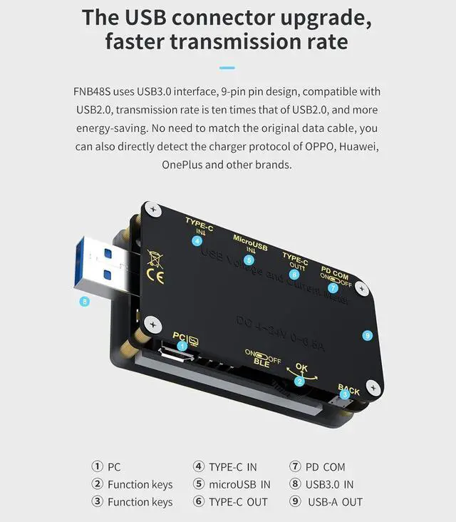 Bright Color Display InterfaceWith a large color display screen, the state of charging is clear at a glance. The USB voltmeter supports screen flip function, through sensing, the screen can be flipped freely, or you can turn off the direction recognition and long press the middle button to flip the screen. It can meet the needs of multi-angle reading and is more convenient to use.