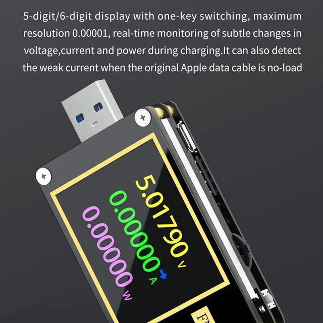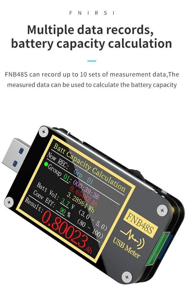 Realtime Monitoring & Data RecordingThe voltage and current tester supports one-touch switching of five-digit or six-digit display, with a maximum resolution of 0.00001, and can monitor subtle changes in voltage, current and power during the charging process in real time. It can record 10 sets of measurement data, and you can use the obtained data to calculate the battery capacity.