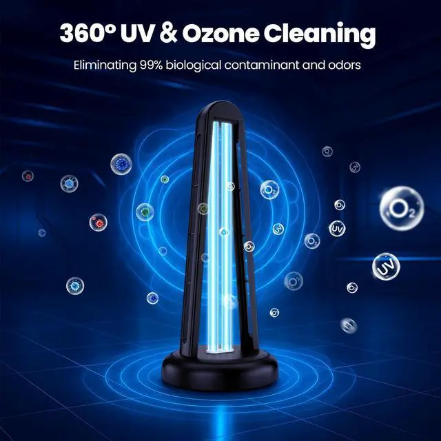 Safety & Ventilation NoticeEnsure that no people or pets are present during operationplease wear the included sunglasses when approaching the device. In addition, the ozone is generated during useplease ventilate the room for at least 40minutes before reentry.