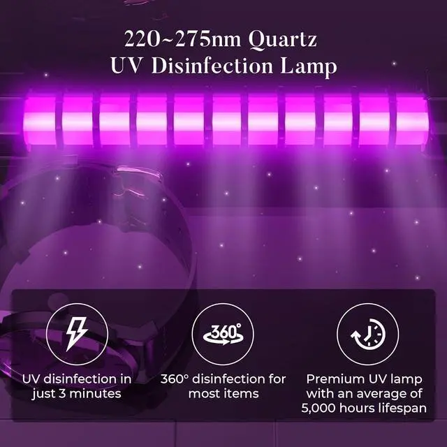 Safe Enclosed Ultraviolet Sanitizer Design: The fully enclosed UV light sanitizer automatically shuts off when opened, helping protect eyes and skin from UV exposure.