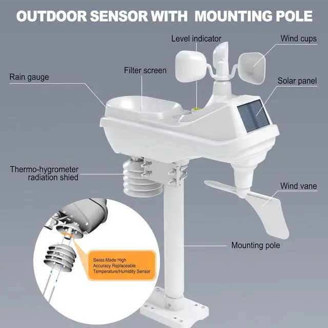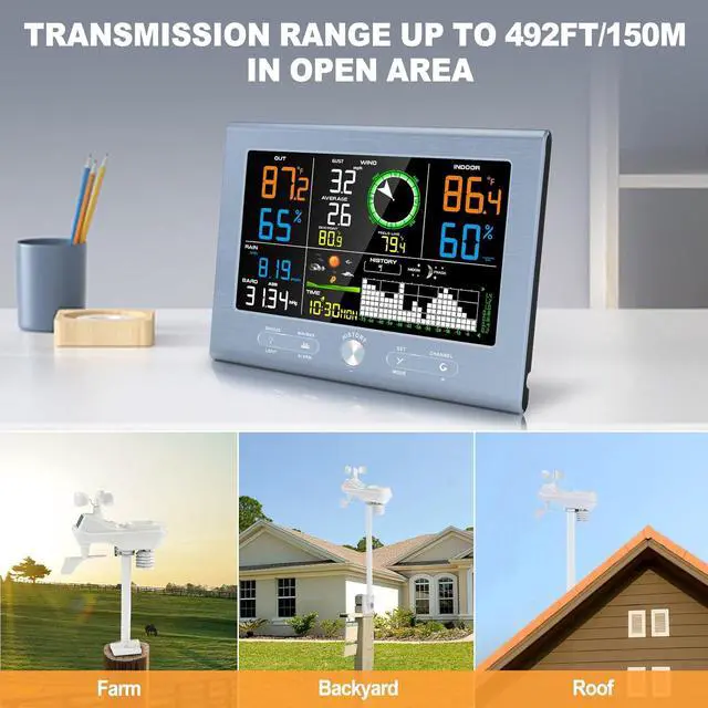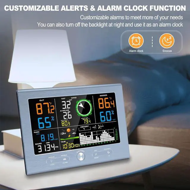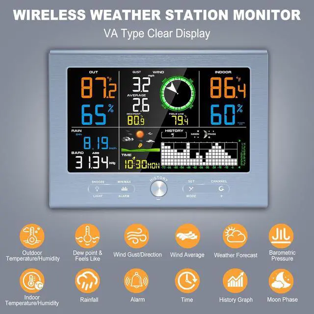 VA Type Clear Display and Atomic ClockThe sleek indoor console featuring a VA-type clear screen, providing accessible weather monitoring at a glance. With multiple mounting options, this wireless weather station is easy to place in any room or area. Automatically syncs with the official WWVB radio signal. Simply select your correct time zone during the initial setup
