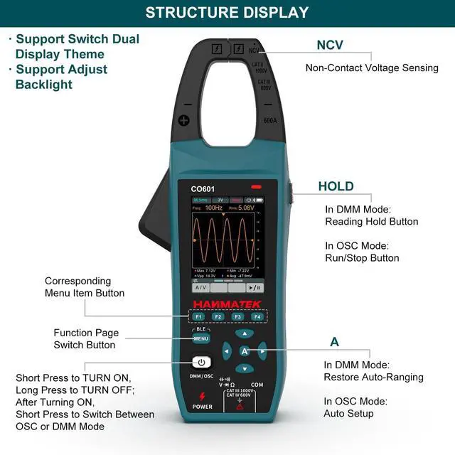 Versatile Digital Clamp Meter & OscilloscopeEasy to use, effectively tool for solving industrial, labs, factories and household electrical issues.