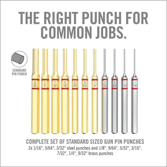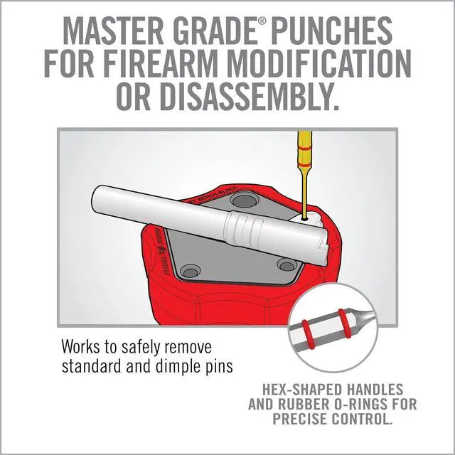 ENHANCED GRIP: The inclusion of rubber O-rings on each punch enhances grip allowing for precise control and minimized risk of slippage. It solidifies this set as a critical component in a gun tool kit.