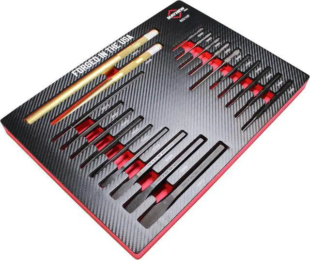s new 21-Piece Punch and Chisel Foam Set features chisels forged from high alloy steel and skillfully ground to a sharp cutting edge, while punches are precision CNC machined to the tightest tolerances. The black oxide finish provides corrosion resistance and durability. Additionally, the foam block is designed to fit into tool drawers, allowing easy access and organization of tools. Each tool is precision-fit, ensuring a snug fit and no movement when retrieving a tool. This set is made in the U. S. A. and backed by a lifetime warranty.