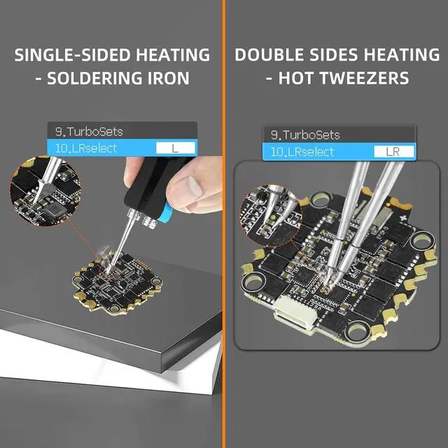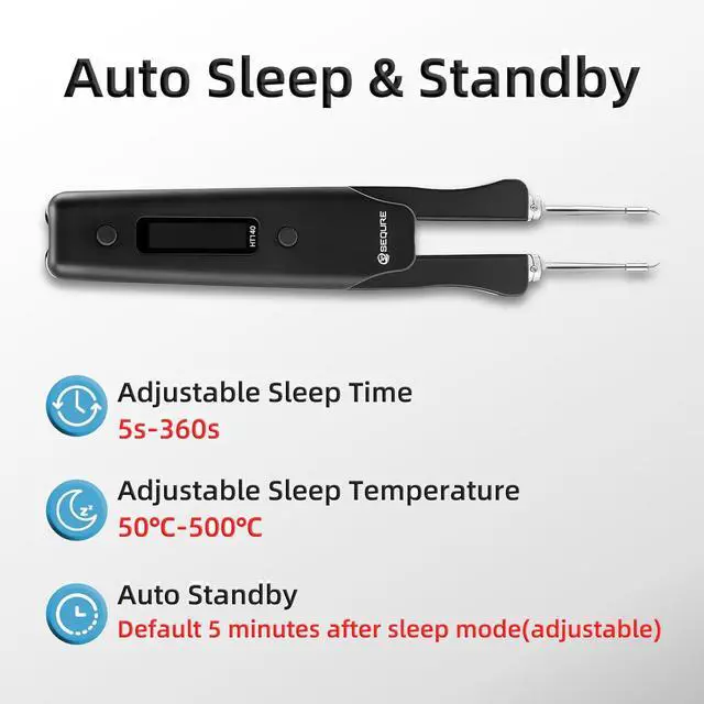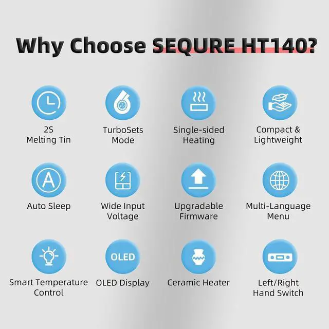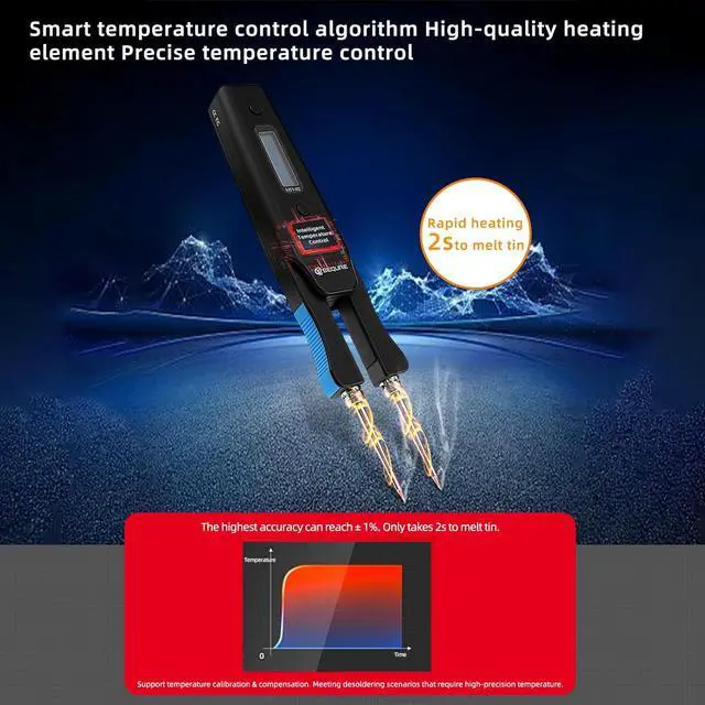 Smart Soldering Kits HT140 hot tweezers soldering iron can smartly control the fall & rise of the temperature of desoldering tip. Enters sleep mode after 60s of inactivity, reducing tip wear. Support temperature calibration and compensation. Compatible with C210 soldering tips & C120 hot tweezers cartridge tips.