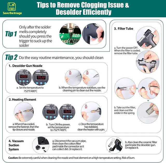 Replaceable Tube Depending on your rate of application, you can choose to either clean or replace the filter tube and its components at will. The cleaning option is quick and easy for users with a lower usage rate, while the disposable option is great and cost-effective for users who require desoldering on a daily basis.