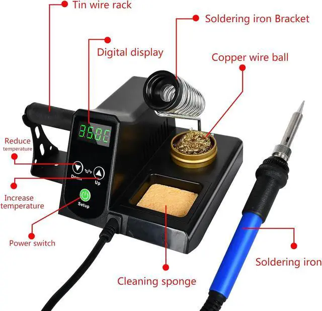 LUXURIOUS SOLDERING KIT: Upgraded Watt Soldering Station with 5 x Additional Soldering Tip, 1x Bracket for solder On The Side, 1x Roll of Lead-free Solder Wire, 1x Solder Sucker, 1x Anti-static Tweezers, 1x Brass Tip Cleaner, 1x Cleaning Sponge, 1x Instruction Manual.
