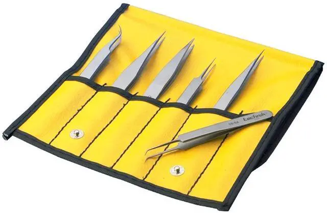 6 of our most popular tweezers supplied in a plastic pouch. Contains tweezers pattern AA-SA, OO-SA, OOD-SA, 3C-SA, 5-SA and 7-SA. Made of Stainless steel, anti magnetic and anti acid.