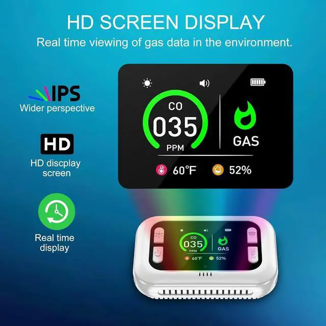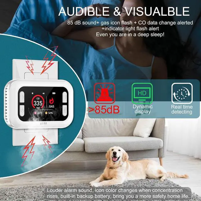 visible and 85 dB audible design>85 dB alarm sound + visible dynamical data showing on HD screen, provide effective alerts even during deep sleep.
