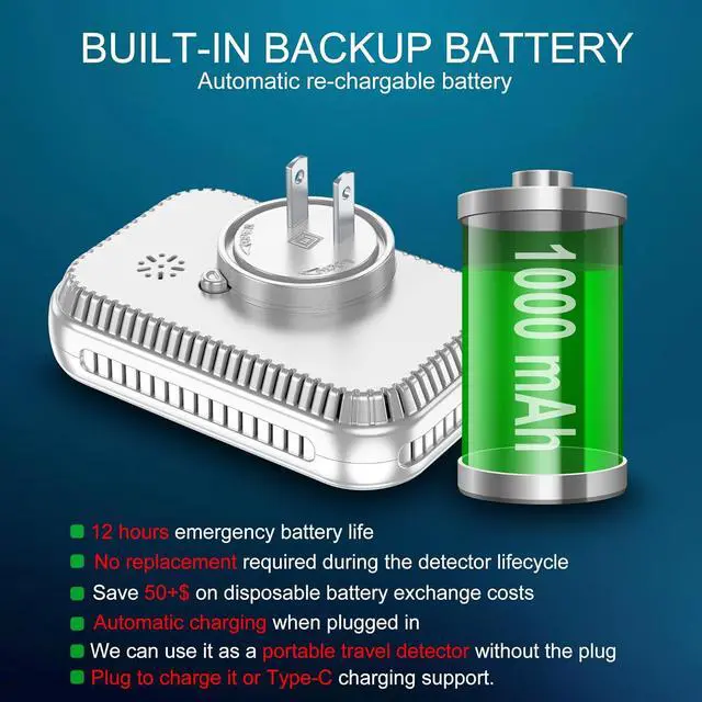 Dual charging-type designThe built-in battery supports dual charging type: Plug in to outlet charge and type-C USB charging(Design with a Type-C port. Package not included cable, need your own cable). We can easily use it as a travel portable detectors.