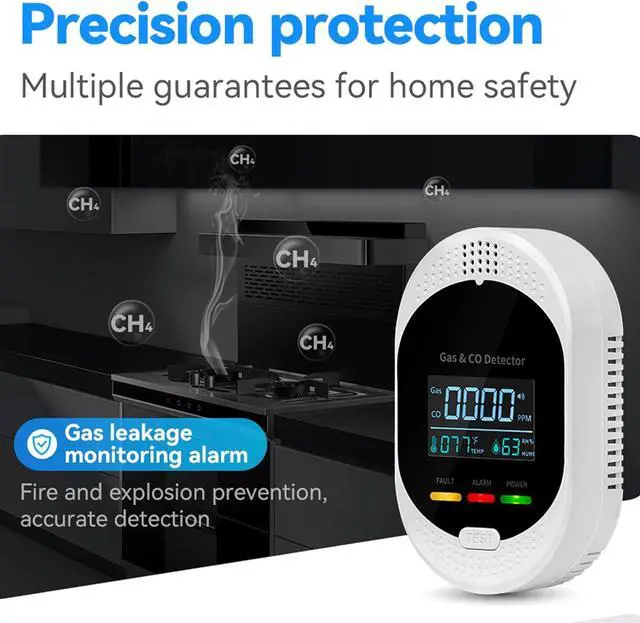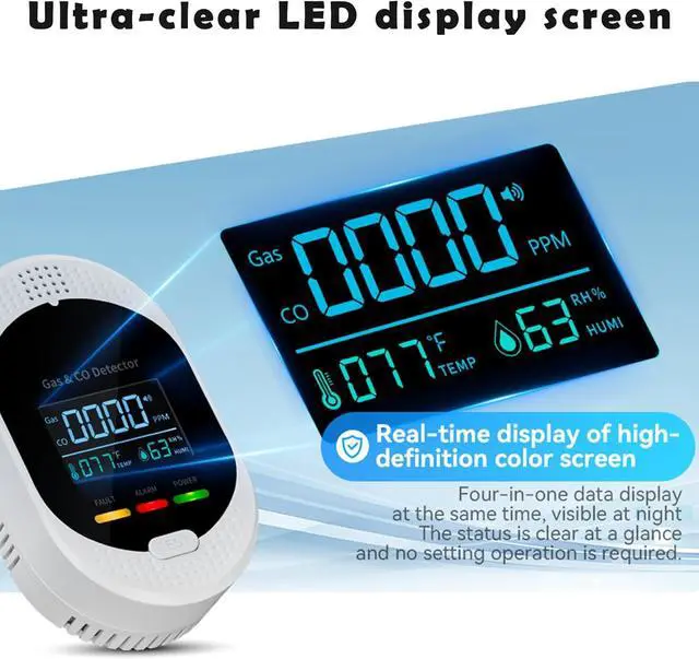Easy to Use & VersatileThis plug-and-play natural gas detector installs in seconds, eliminating complex setup. Its vibrant, easy-read LCD screen clearly shows real-time Co and gas levels day or night. Compact and versatile, it provides essential protection for any home, RV, hotel, kitchen or cruise cabis without wasting space