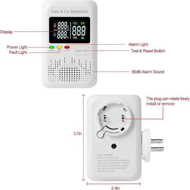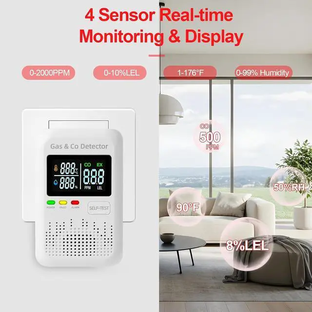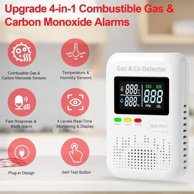 4-in-1 combination gas and carbon monoxide detector suitable for home, apartment, RV, hotel, kitchen, and cruise ship cabin