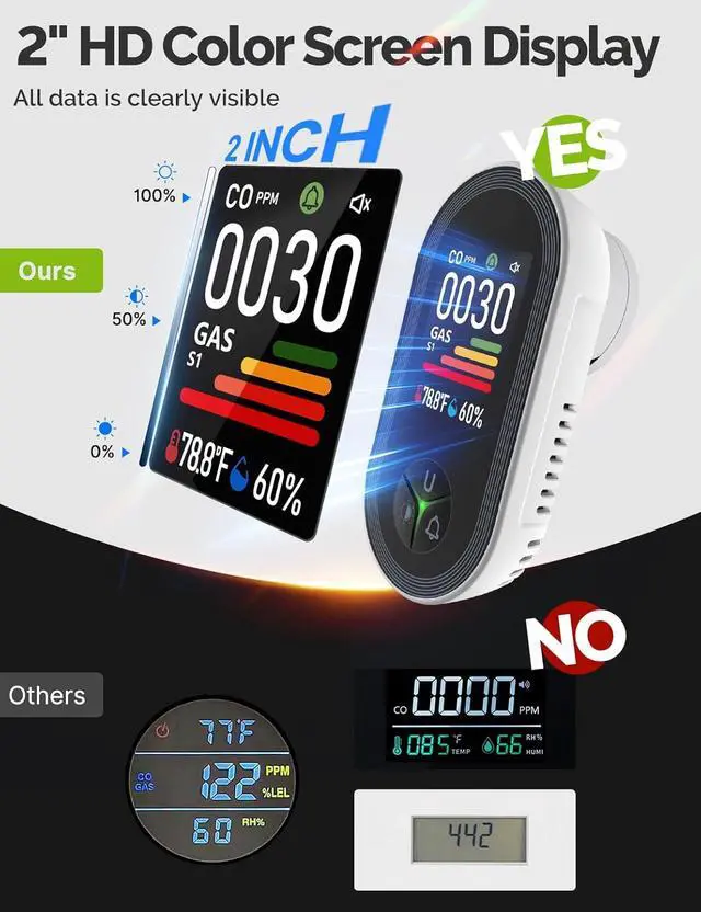 Built-In Temperature & Humidity Monitoring - More than just a gas detector continuously monitors indoor temperature (14122) and humidity (095% RH) to support a healthier living environment.