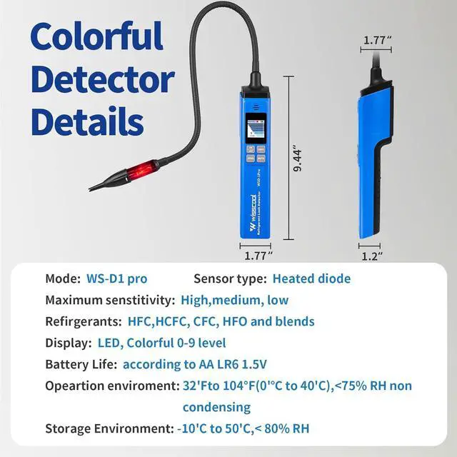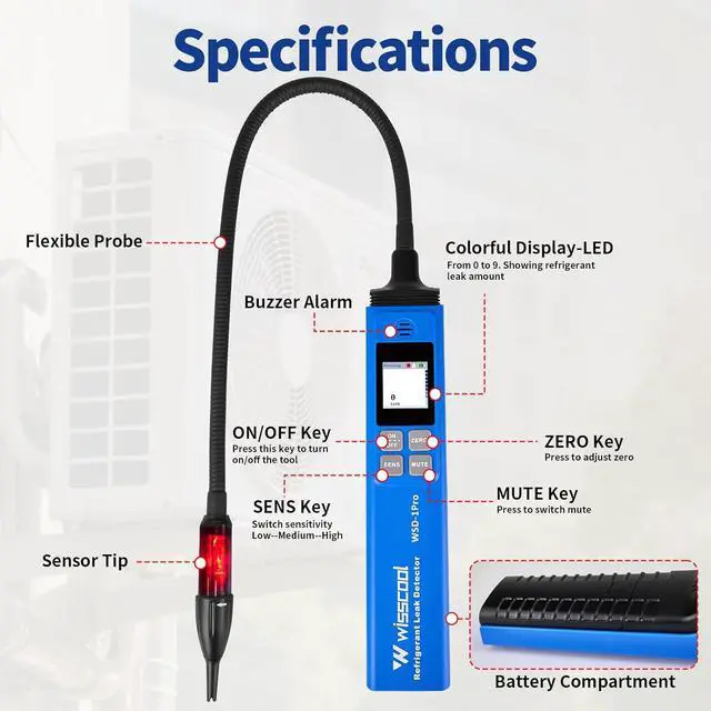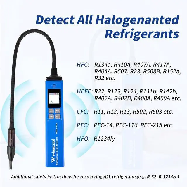 [Power-Saving and Long Life]: The HVAC refrigerant detector is equiped with 10000+ times bending tested detection probe and sensor life 1000 hours typical. Heated diode sensor brings upper precision compared to conventional sensors, making it effective for detecting different refrigerants
