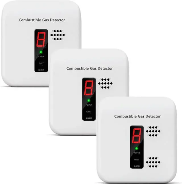 Natural Gas and Propane Leak Detector Alarm for Home, White, 3-Pack