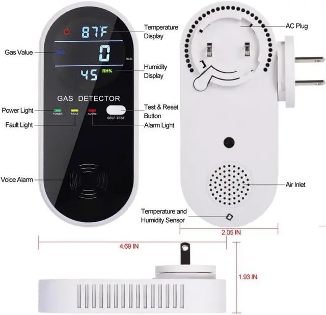 Voice & Light Alarm: When the gas concentration exceeds the standard, the propane gas detector device will sound a light and sound alarm to respond promptly and protect family safety